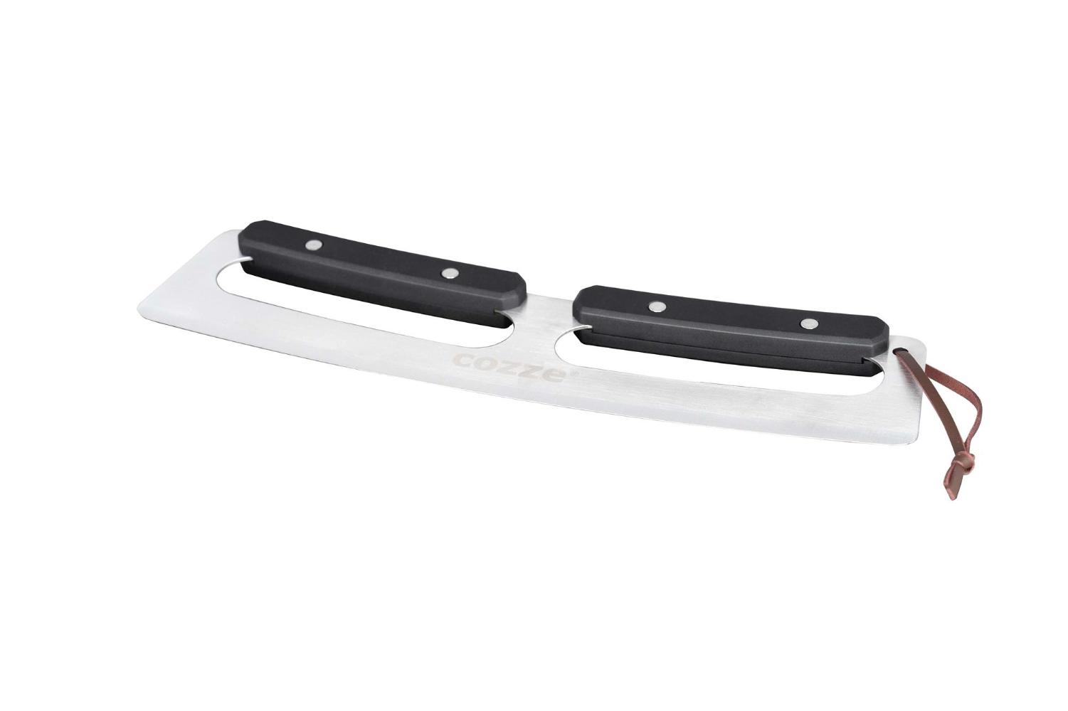 Krájejte pizzu jako profesionál Kolébkový kráječ Cozze 32 cm umožňuje rychlé a přesné porcování pizzy bez námahy. Díky dvěma rukojetím a ostré nerezové čepeli zvládnete i silnější těsto. Ideální doplněk ke každé pizza peci.