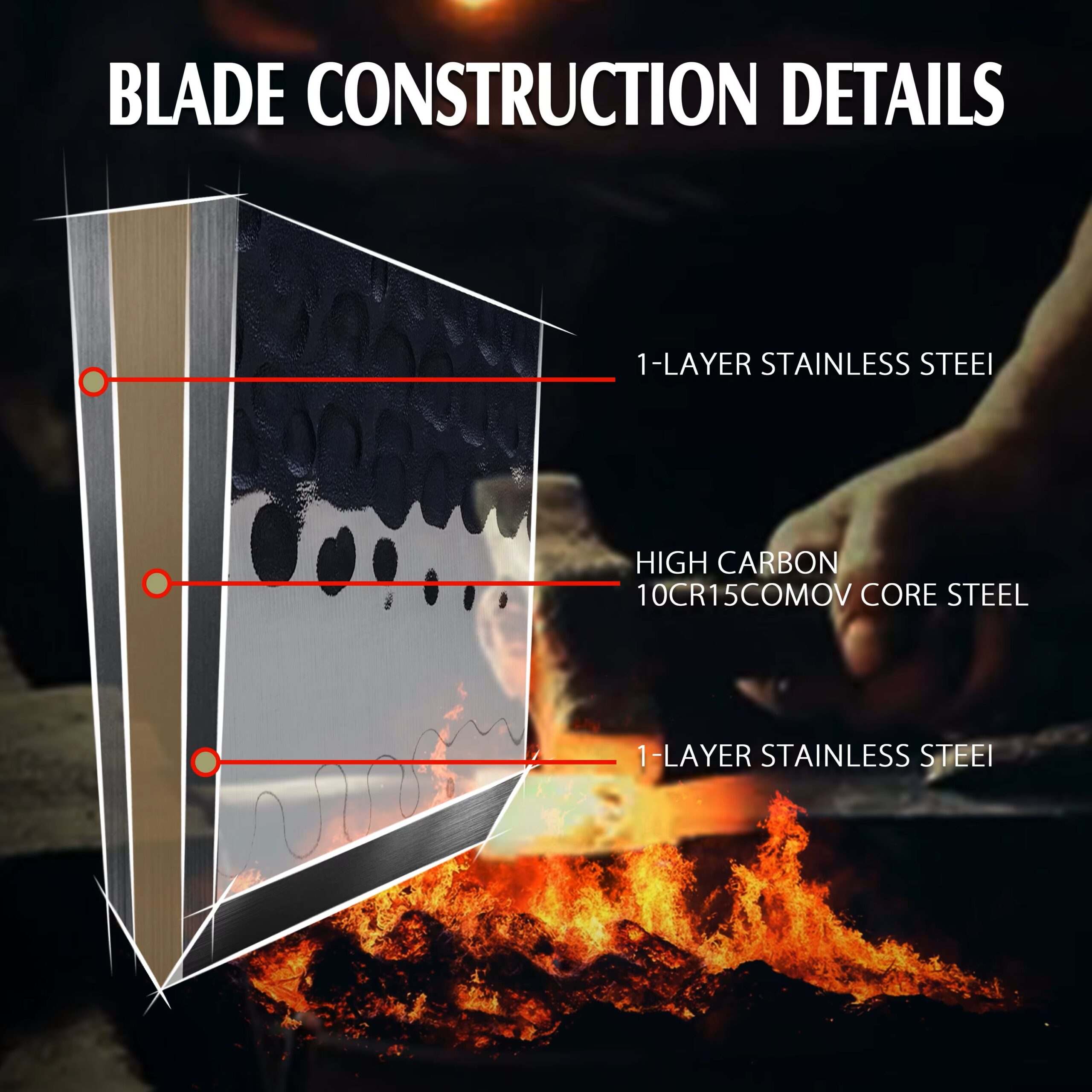 Materiál čepele: 3vrstvá ocel, jádrová vrstva 9Cr18MoV
