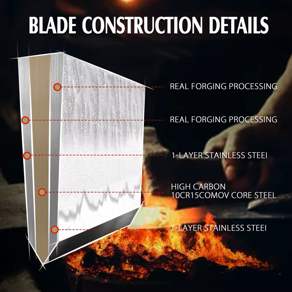 Materiál čepele: 3vrstvá ocel, jádrová vrstva 9Cr18MoV