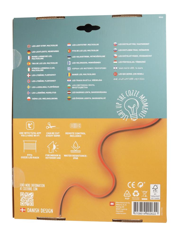LED světelný pásek Cozze o délce 5 metrů je ideálním doplňkem pro venkovní kuchyně Cozze Element. Zajišťuje kvalitní osvětlení pracovní plochy a zároveň vytváří příjemnou atmosféru při večerním grilování nebo posezení s přáteli.