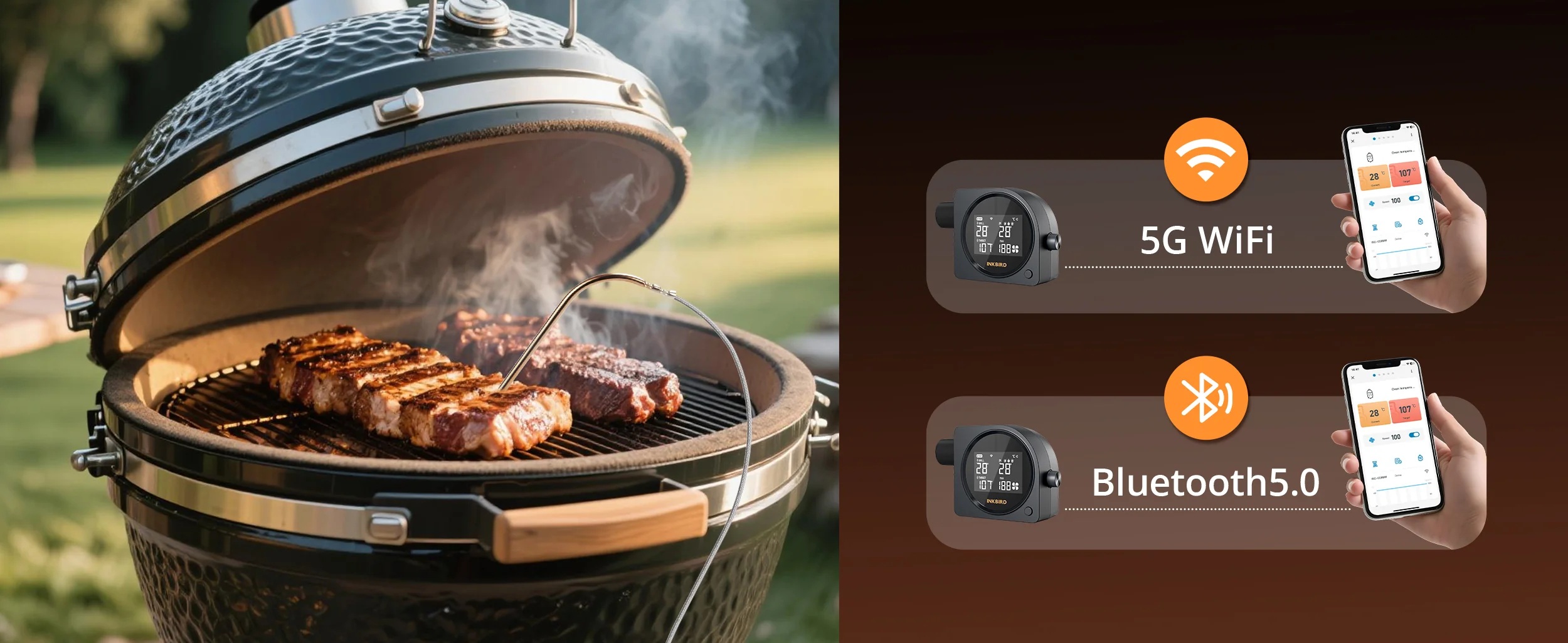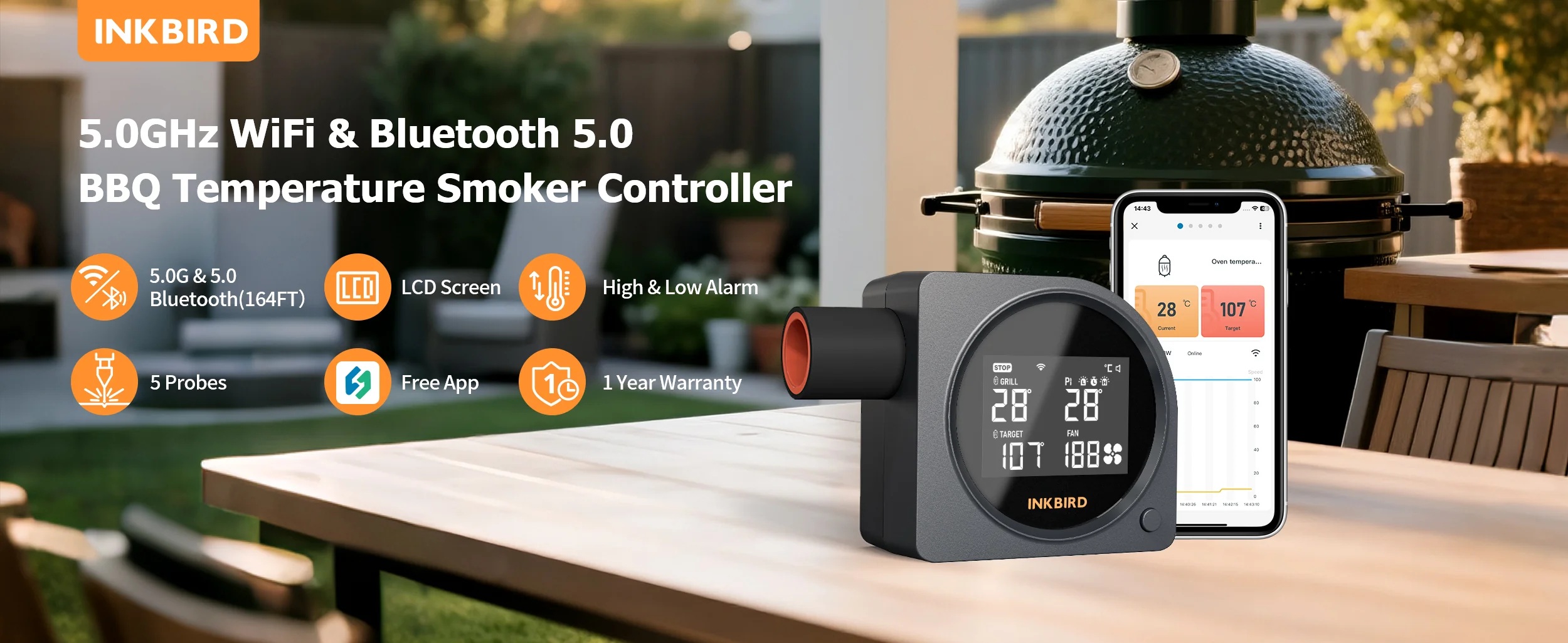 Regulátor teploty v grilu ISC-028-BW Inkbird kontroluje, monitoruje a reguluje požadovanou teplotu v keramických grilech typu vajíčko
