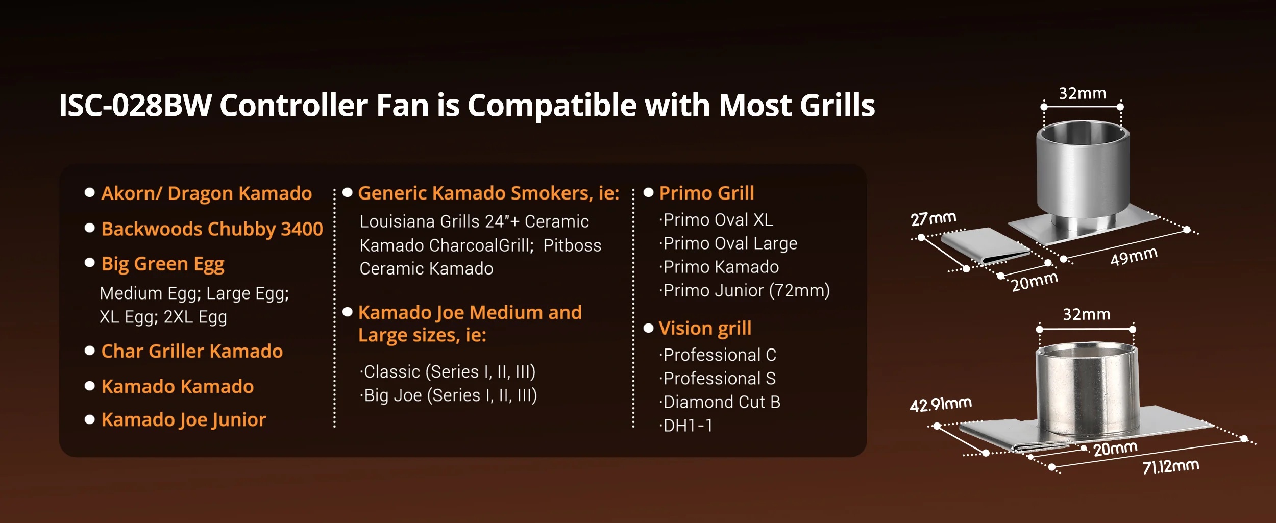 Ideální pro grily jako Big Green Egg, Kamado Joe, Primo, Vision Grill, Akorn Kamado