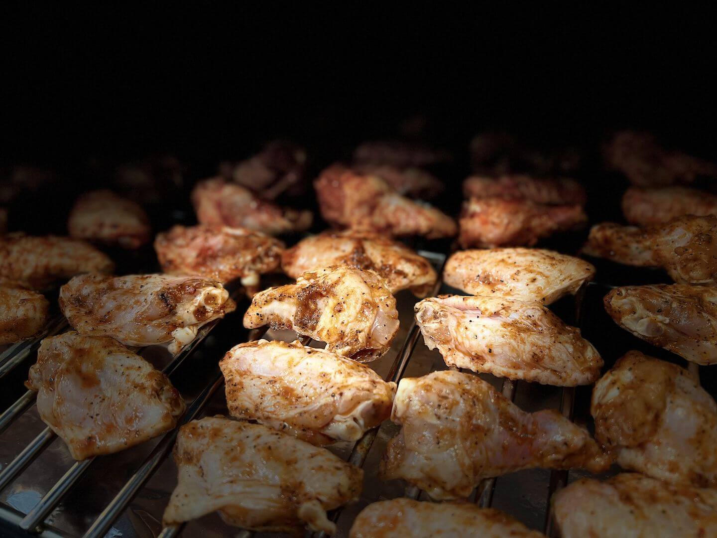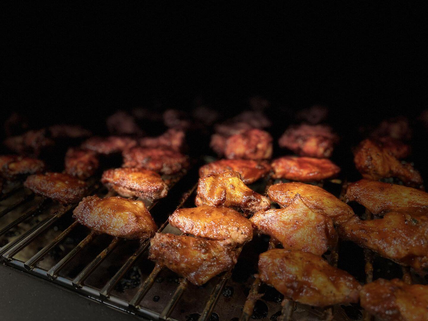 - Gril rozehřejeme na 170°C (teplota v nepřímé zóně). Do nahřátého grilu vložíme křídla, která jsme vyndali 30 minut před grilováním z lednice.