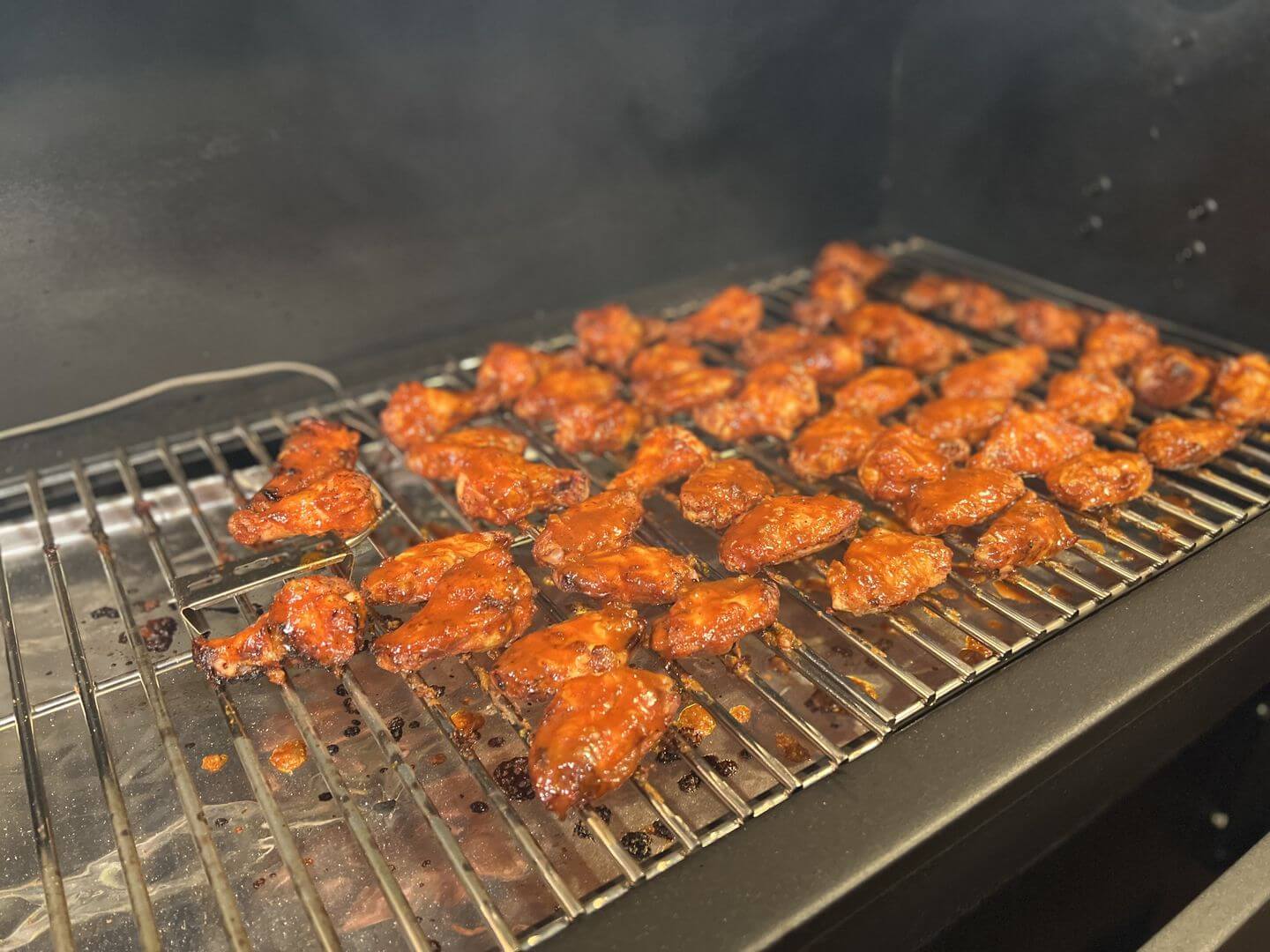 - Po 30 minutách křídla potřeme omáčkou Buffalo a otočíme je. Poté je potřeme omáčkou i z druhé strany a grilujeme dalších 30 minut.