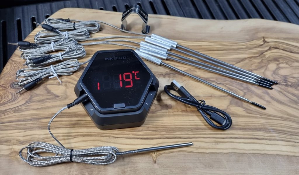 Raději bychom vám doporučili kvalitní produkty od značky Inkbird, na které se můžete vždy spolehnout, propojení je snadné, mají krásný design a změříte s nimi úplně všechno – teplotu v mase a díky praktickým háčkům sondu snadno připevníte a změříte i celkovou teplotu v grilu nebo udírně. Určitě vždy doporučujeme vybírat teploměr s více sondami. Těch totiž opravdu není nikdy dost a přehled o teplotě je zkrátka základ úspěchu.